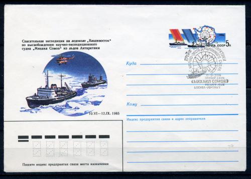 Почтовый конверт с ОМ и СГ. СССР 1986г. Ледокол "Владивосток". КО.