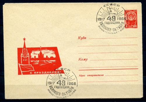 Почтовый конверт ХМК со СГ. СССР 1966г. 49-я годовщина Великого Октября. КО