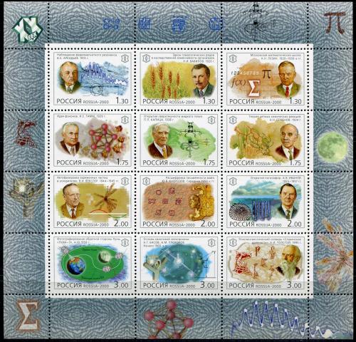 Почтовые марки. Россия. 2000г. ХХ век. Наука. ЛИСТ. №593-604.