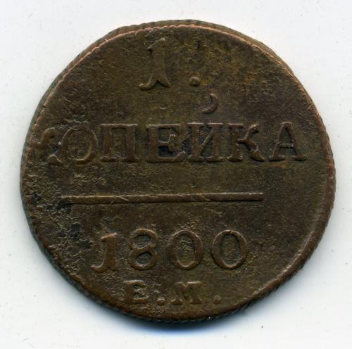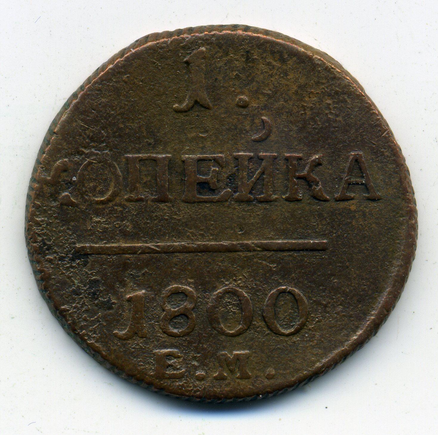 Монеты Царской России. 1 копейка 1800 г ЕМ.