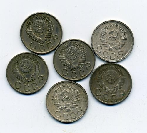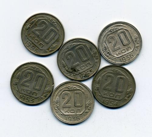 Монеты СССР. 20 копеек 1936-1956 г 6 шт.