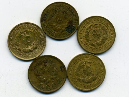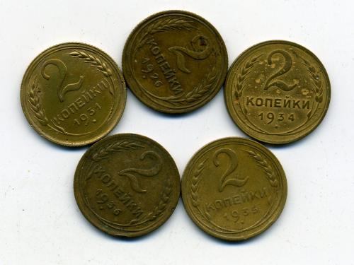 Монеты СССР. 2 копейки 1926-1936 г 5 шт.
