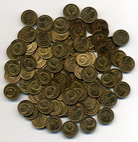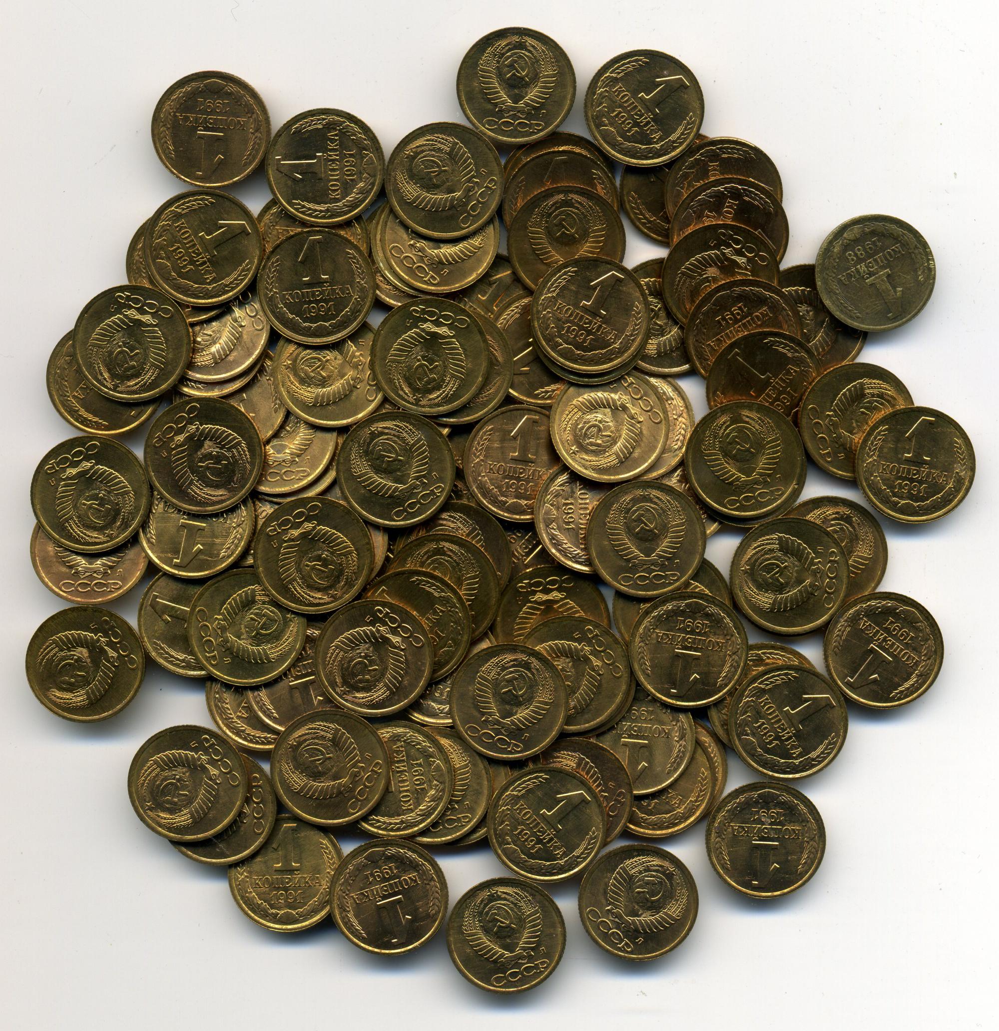 Монеты СССР. 1 копейка 1991 Л. 100 шт.