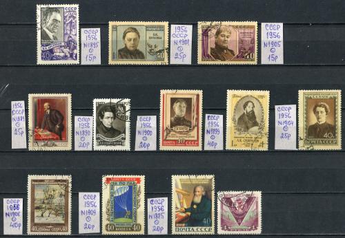 Почтовые марки. СССР, 1956 г. Сборный лот. Арсеньев, Крупская, Федотова, Ленин и др.