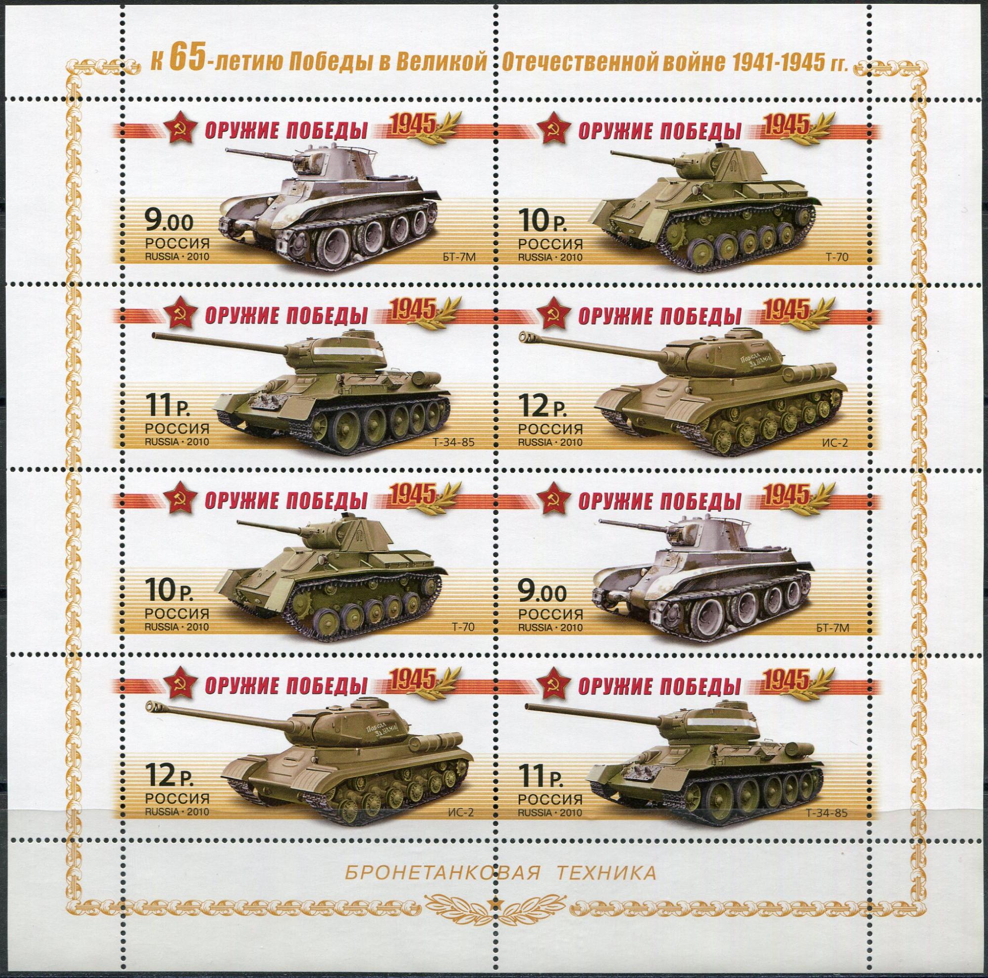 Почтовые марки. Россия. 2010. Оружие Победы. Танки. МЛ. № 1404-1407