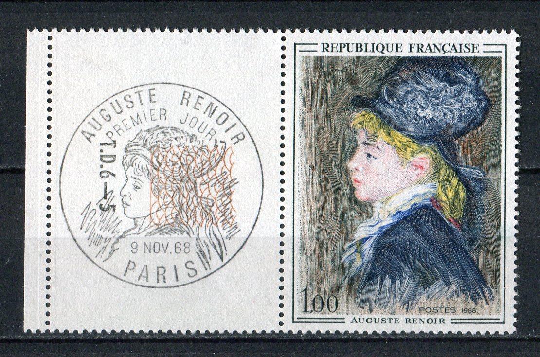 Почтовые марки. Франция, 1968 г. Ренуар. Живопись. №1643 + куп.