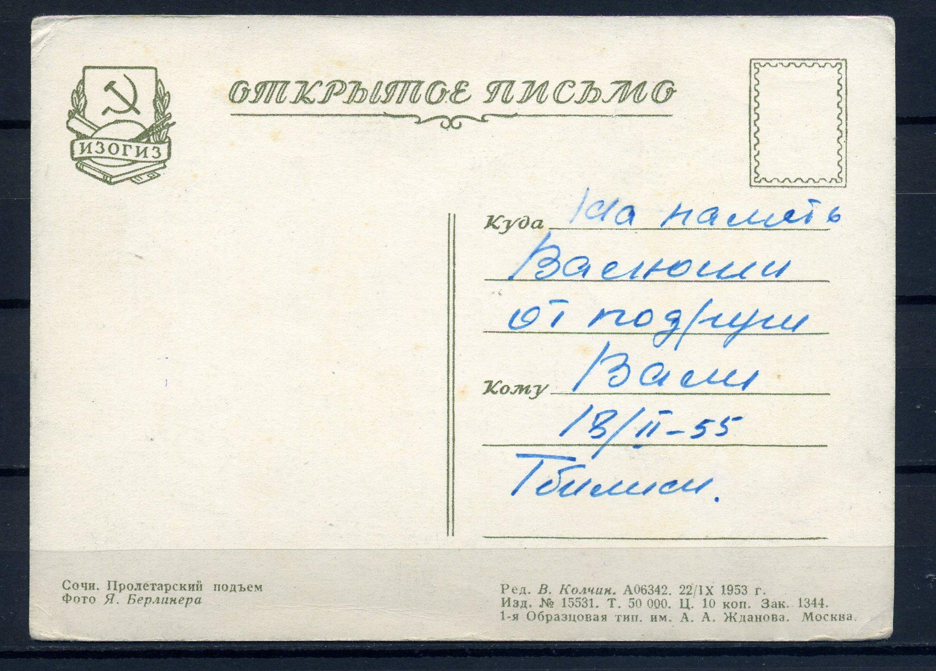 Открытое письмо (подписано). СССР 1953 г. Сочи. Пролетарский подъём.