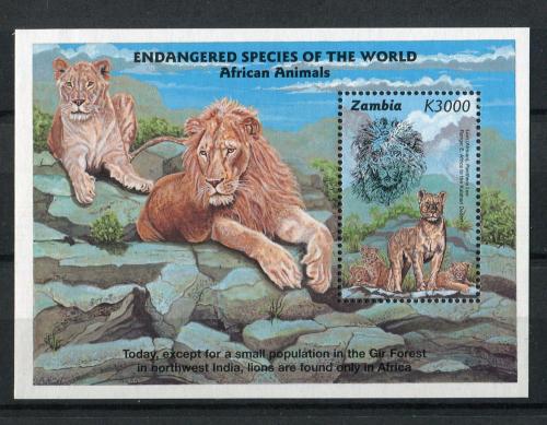 Почтовые марки. Гамбия, 1997 г. Бл.22 Львы и кошки.