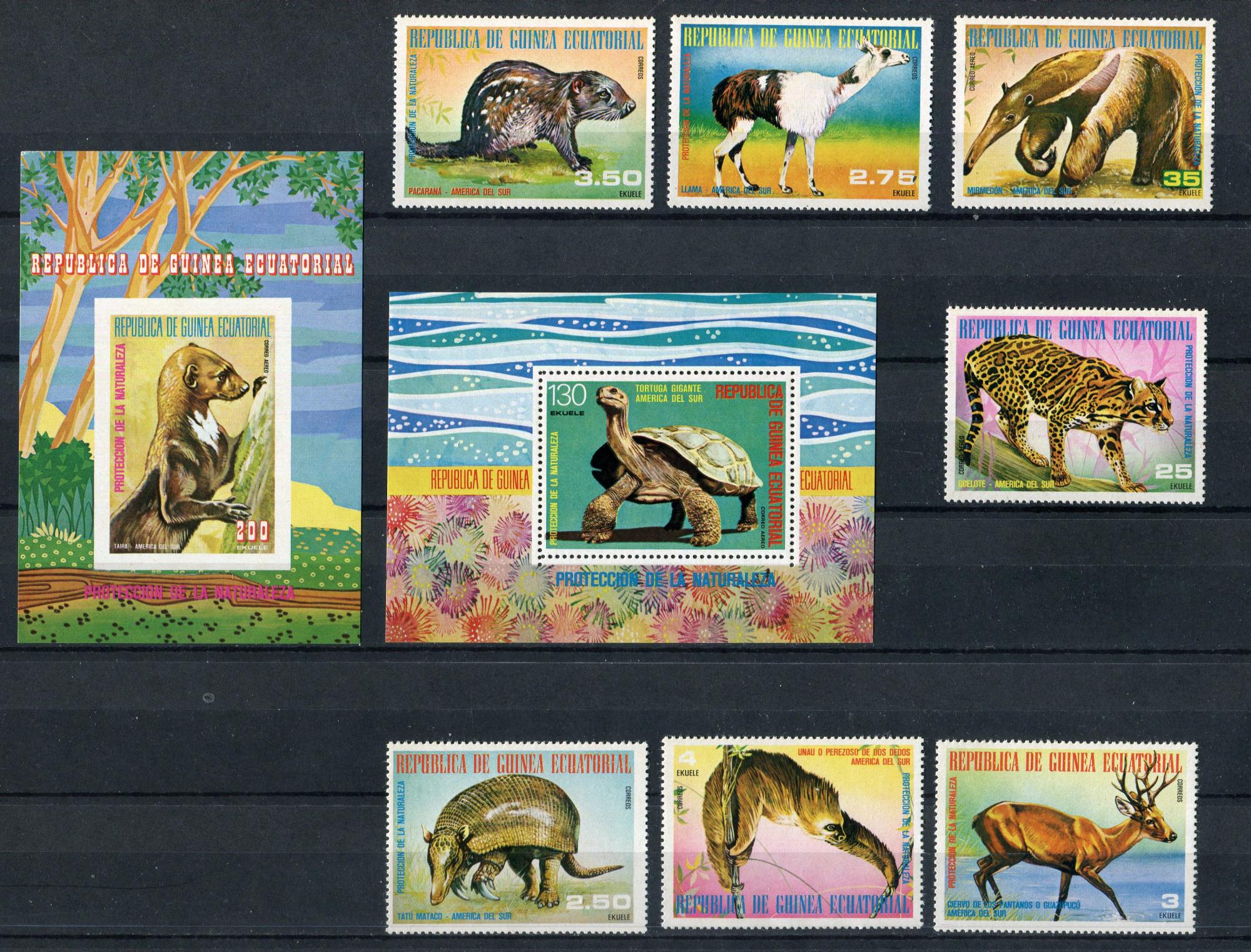 Почтовые марки. Экв. Гвинея, 1977 г. Бл. 273-274, № 1248-54. Фауна Ю. Америки. Mi 16.00 e