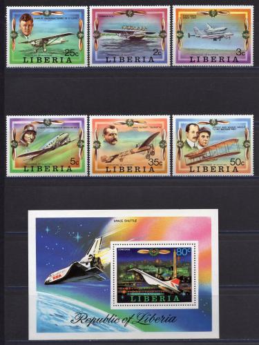 Почтовые марки. Либерия. 1978г. Авиация. №1047-1052. Блок №88А.