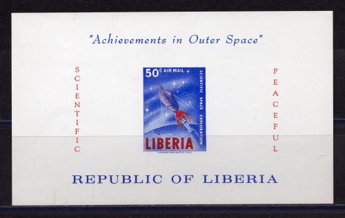 Почтовый блок. Либерия 1964г. Космос. Блок №30А. Беззубц. (См. сост.)