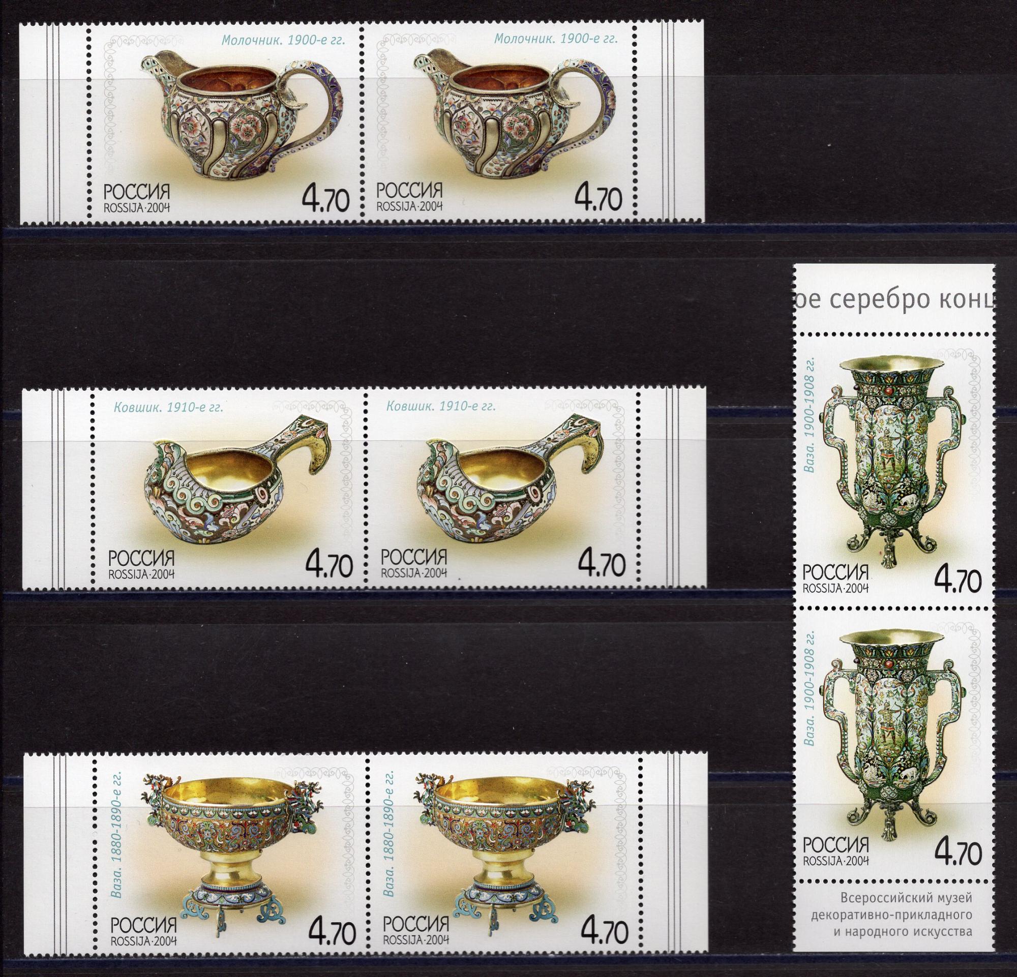 Почтовые марки. Россия. 2004г. Русское серебро. №980-983. Сцепки.
