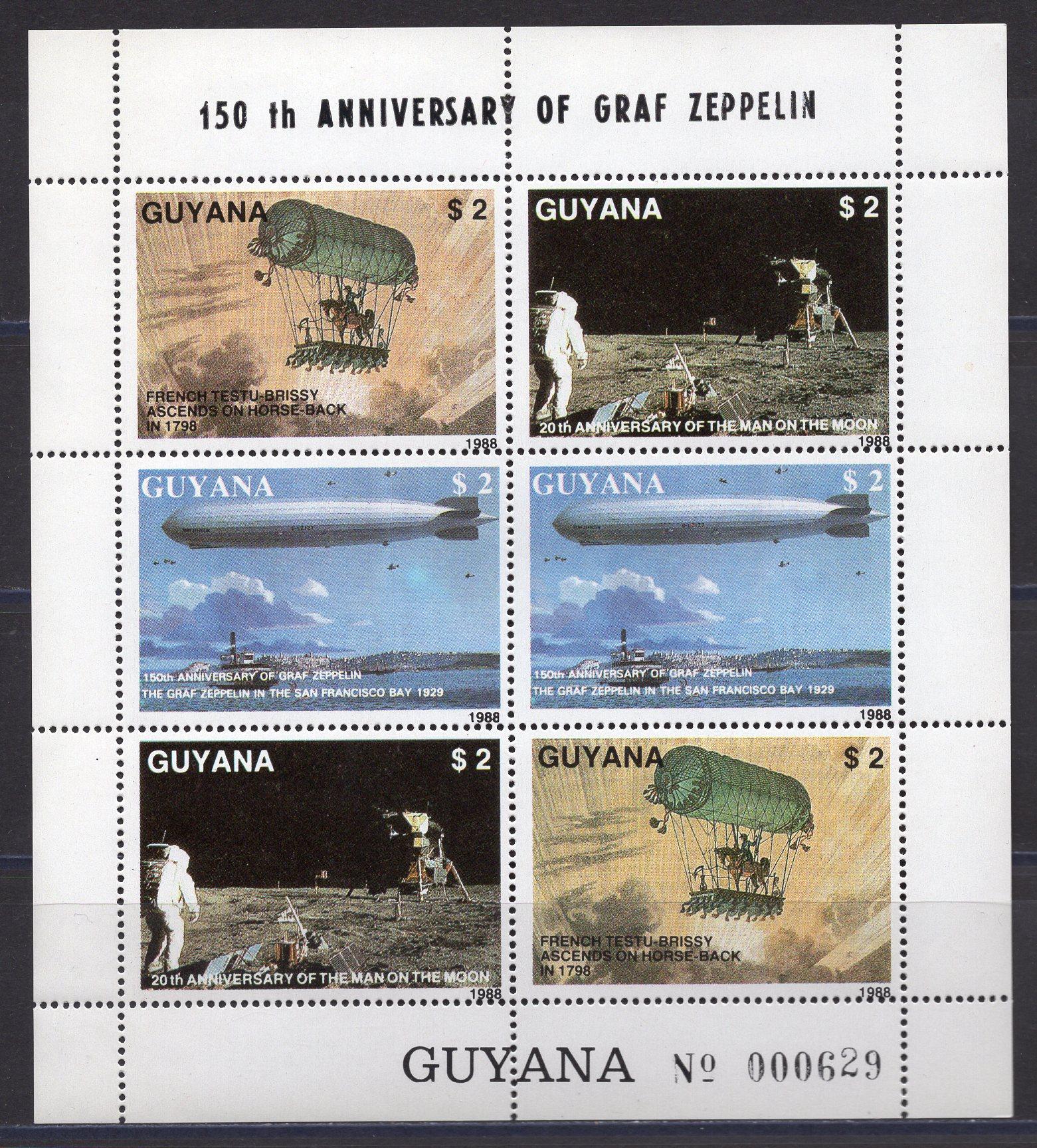 Почтовые марки. Гайана. 1989г. Космос. Дирижабли. №2485-2487. МЛ.