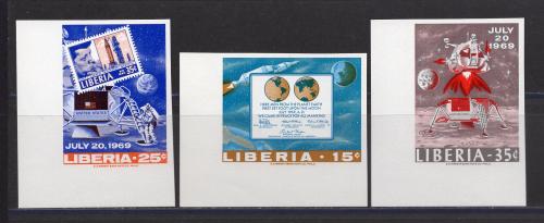 Почтовые марки. Либерия. 1969г. Космос. Аполлон на Луне. №725в-727в. Беззубц. (Mi: 30.00 Е)