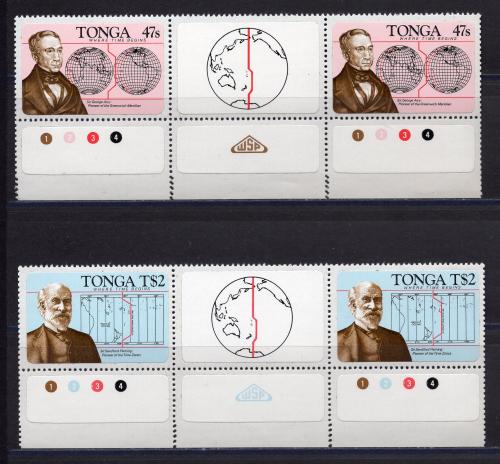 Почтовые марки. Тонга. 1984г. География. Гринвичский меридиан. №896-897. Гаттер-пары. Самоклейки.