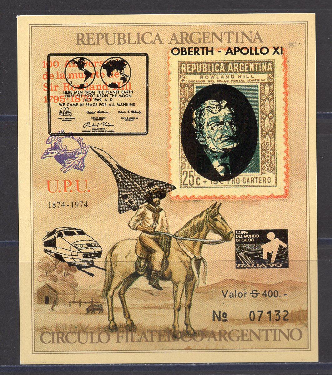 Почтовые марки. Аргентина. 1990г. Космос. Надпечатка. ФУТБОЛ. Италия-90. Блок беззубц. (отсутствует в каталоге)