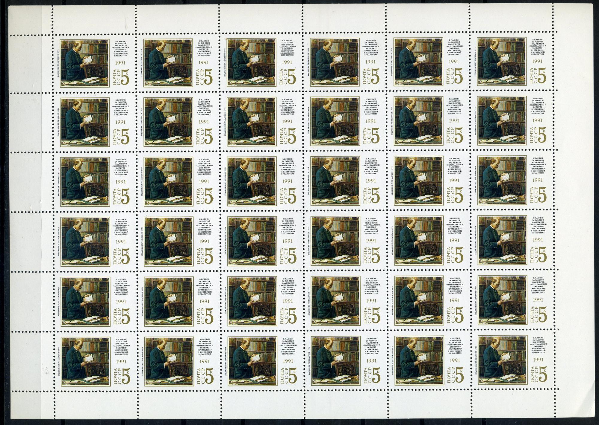 Почтовые марки. СССР 1991 г. В.И. Ленин. № 6313. Лист. (Кат. 1500р.)