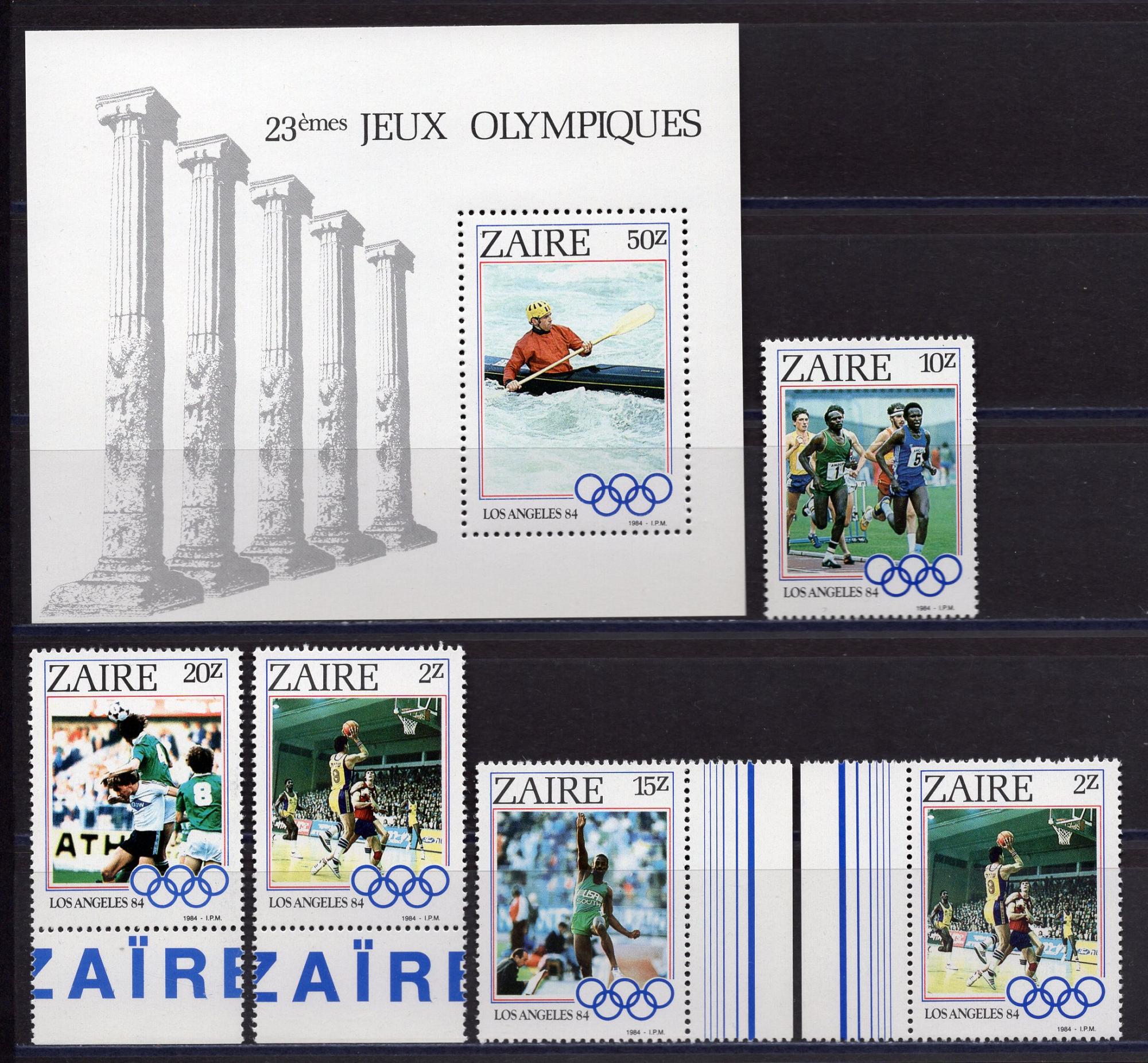Почтовые марки. Заир. 1984г. Олимп.игры. №861-865. Блок №49.
