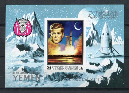 Почтовые марки. Йемен, 1969 г. Бл. 156B. Космос. Кеннеди. Безз.