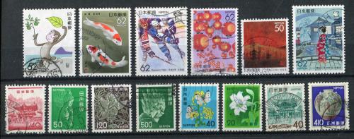 Почтовые марки. Япония. 1980-1990. Сборный лот. Цветы. Рыбы. Природа.