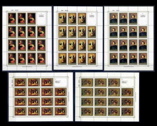 Почтовые марки. СССР 1985 г. Эрмитаж(испанская живопись). № 5597-5601. ЛИСТЫ (4*4) с купоном.