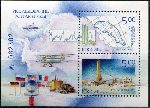 Почтовый блок. Россия. 2003. Исследование Антарктиды. Номерной блок. № 44