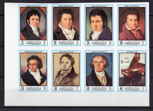Почтовые марки. Аджман. 1972г. Бетховен. №1336-1343. Беззубц.
