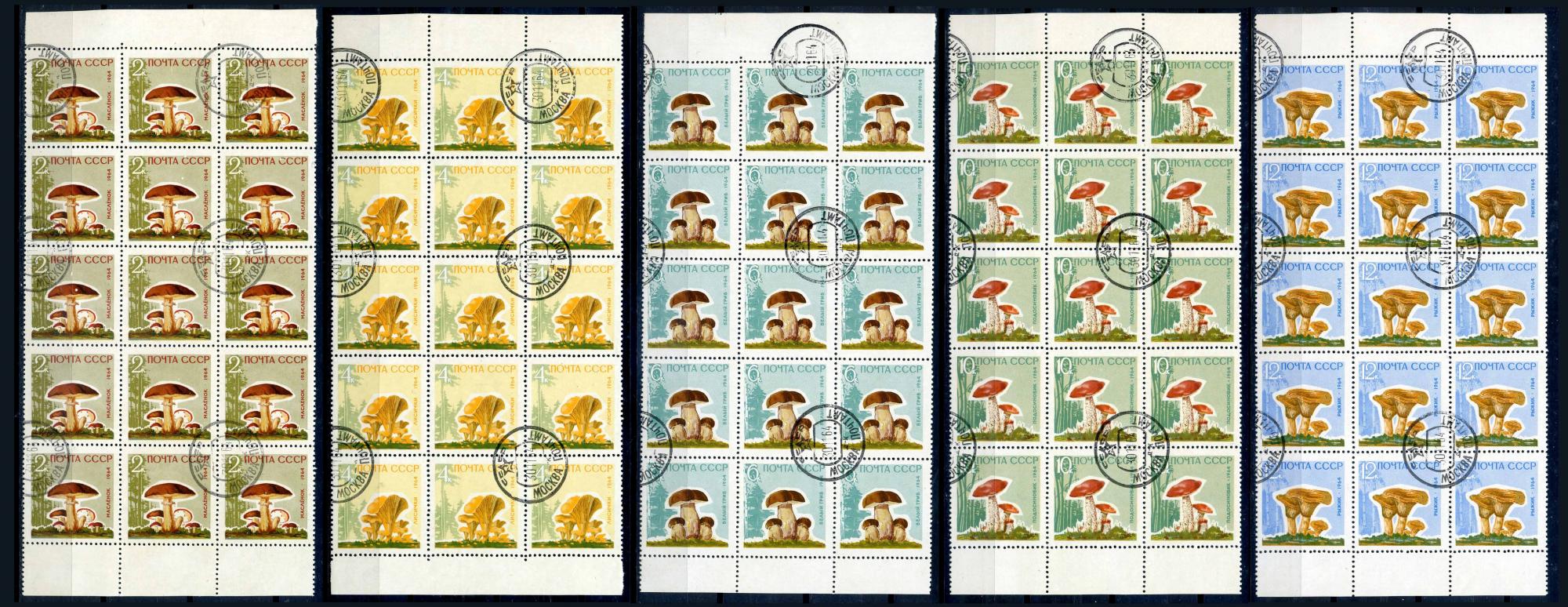 Почтовые марки. СССР 1964 г. Грибы. №3123А-3127А (лак. покрытие). 15 серий.