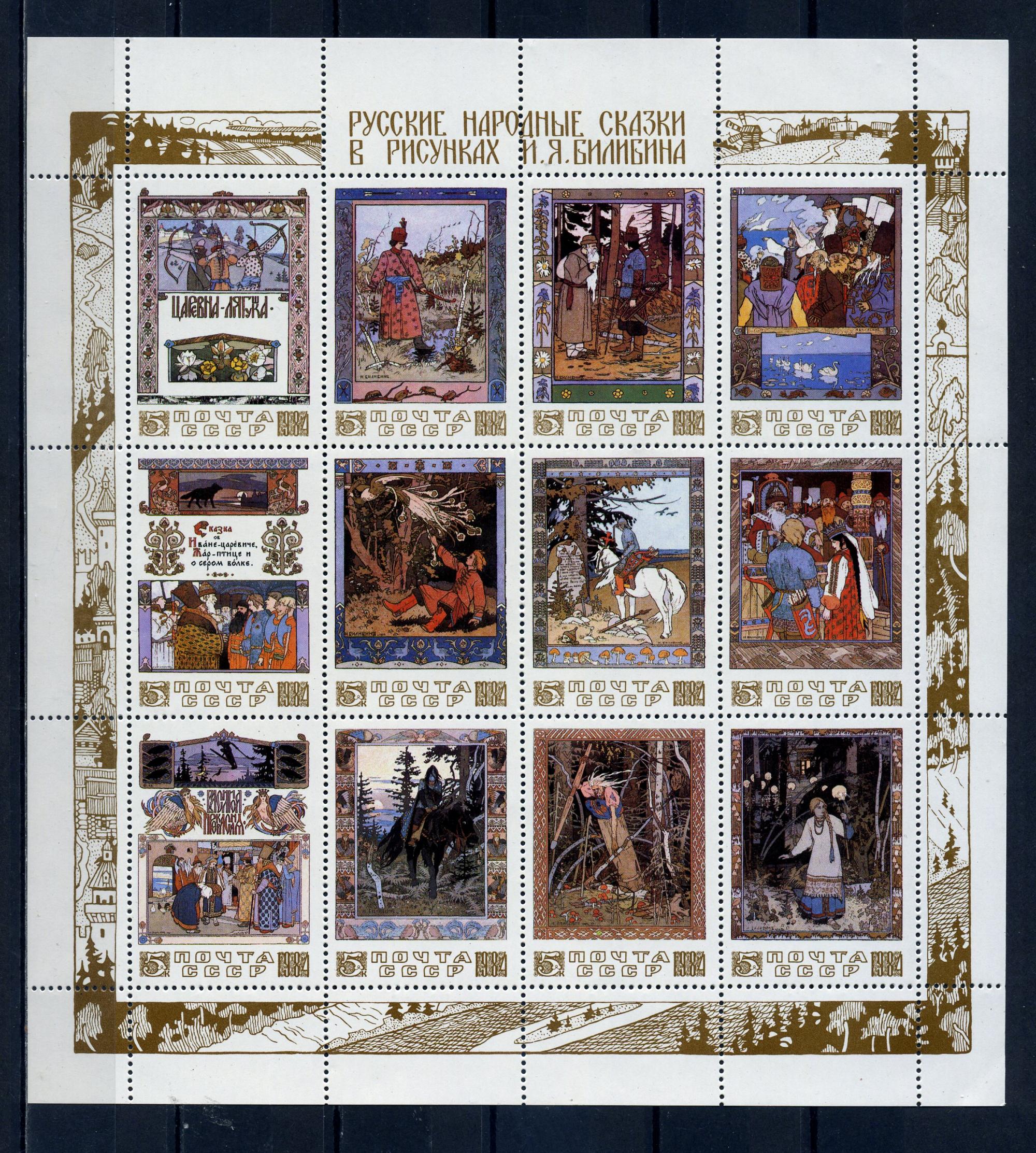Почтовые марки. СССР. 1984г. Сказки в рисунках И.Я.Билибина. №5530-5541. Серия в листе.