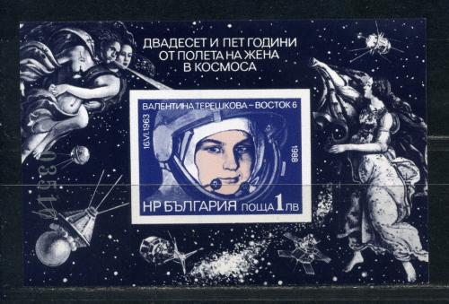 Почтовые марки. Болгария. 1988г. Космос. Терешкова. Блок №179в. Беззубц.