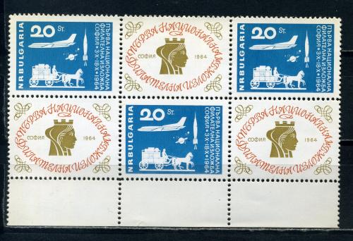 Почтовые марки. Болгария. 1964г. Филвыставка. Космос. Марки с купонами. №1487.