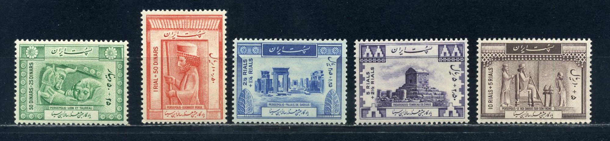 Почтовые марки. Иран. 1948г. Авиценна. Металлография. №780-784.
