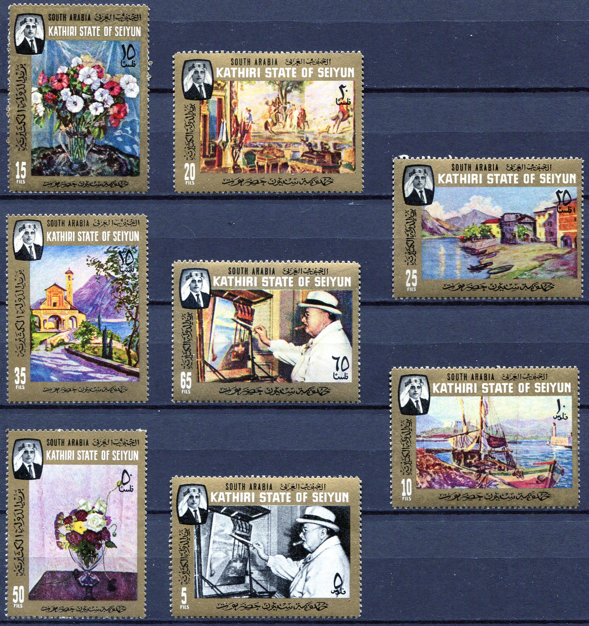 Почтовые марки. Аден Kathiri St. 1966г. Живопись Черчилля. № 91-98 (Mi: 20.00 Евро)