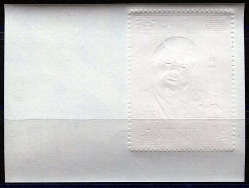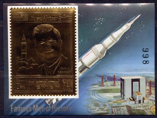 Почтовые марки. Йемен. 1969г. Космос. Кеннеди. Фольга. Золото. Блок №172В.