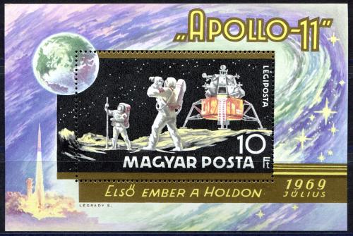 Почтовые марки. Венгрия. 1969. Космос. Аполлон-11. Блок №72 (см. сост.).