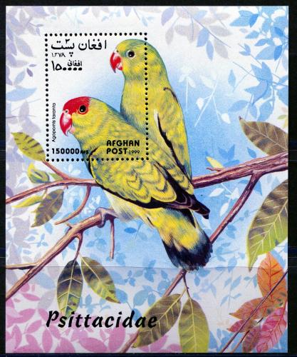 Почтовые марки. Афганистан. 1999. Попугаи. Блок №116.