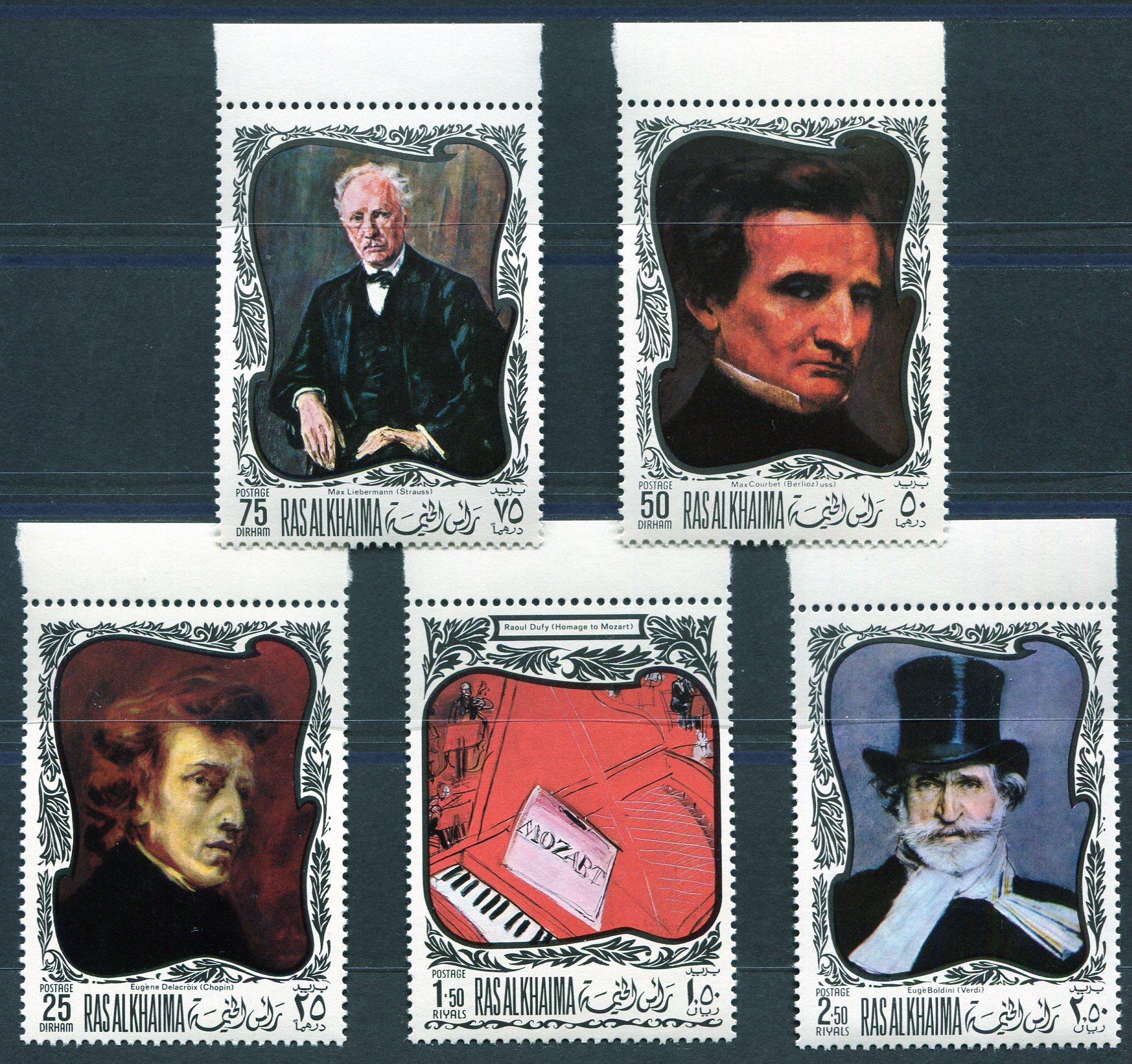Почтовые марки. Рас-эль-Хайма. 1969. Великие композиторы. № 276-280.