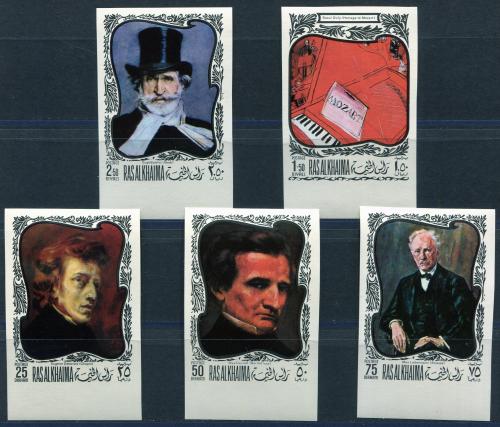 Почтовые марки. Рас-эль-Хайма. 1969. Великие композиторы. БЕЗЗ. № 276-280В.