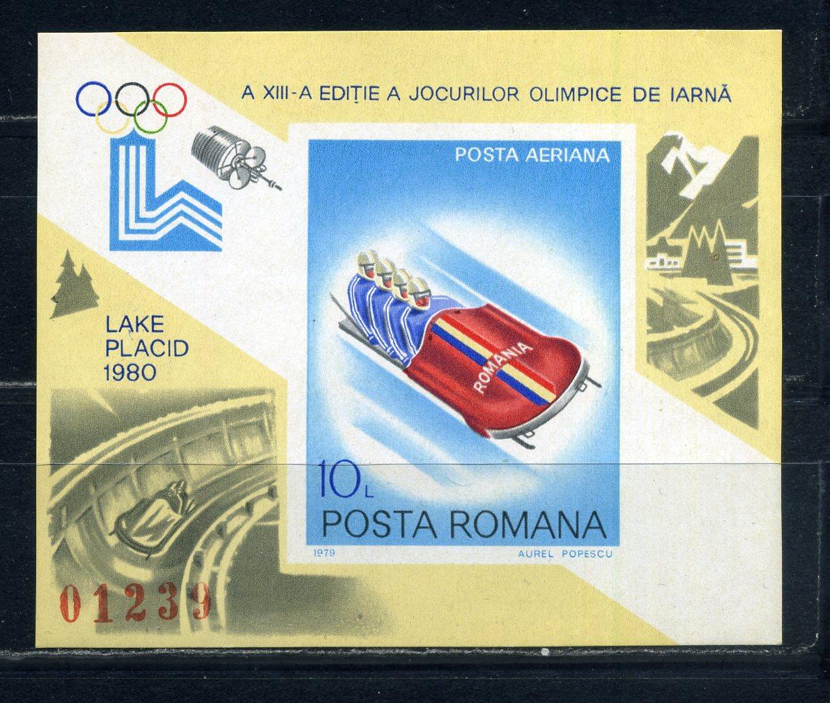 Почтовые марки. Румыния. 1979г. Олимп.игры. Блок №165в. Беззубц.