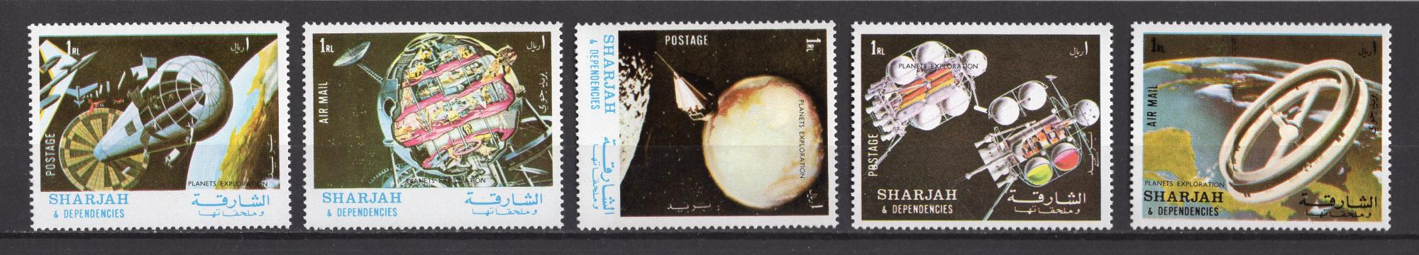 Почтовые марки. Шарджа, 1972 г. Космос. Исследование Солнечной системы. Mi № 1000 - 1004.