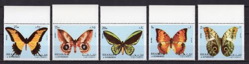 Почтовые марки. Шарджа, 1972 г. Бабочки. MiNr. 1018 - 1022.