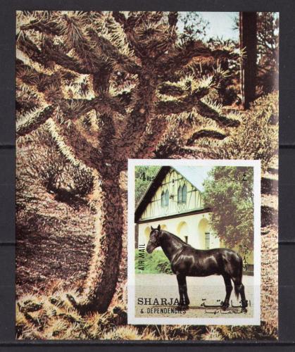 Почтовые марки. Шарджа, 1972 г. Фауна. Лошади. Бл. 116в. Безз.