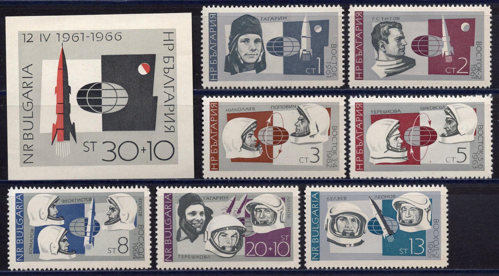 Почтовые марки. Болгария. 1966г. Космос. Гагарин. №1647-1653. Блок №19.