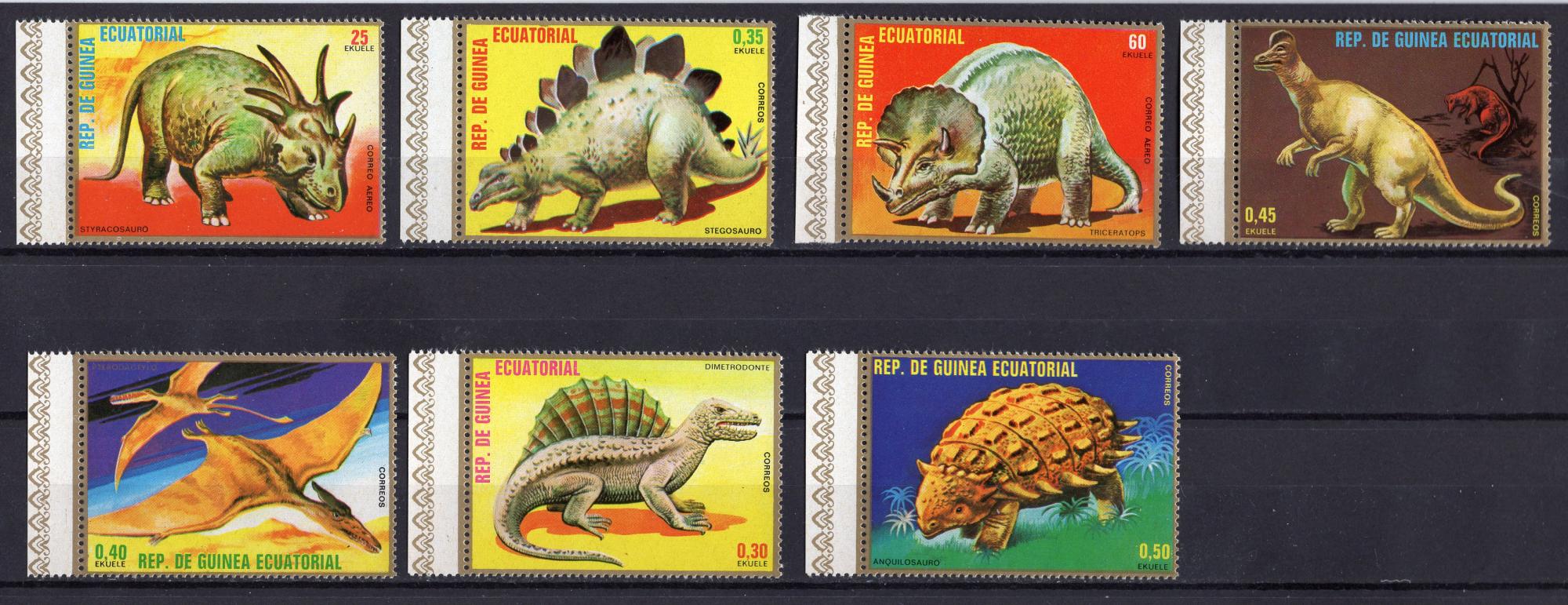Почтовые марки. Экв. Гвинея, 1978 г. Динозавры. № 1352 - 1358, бл. 304 (см. сост).