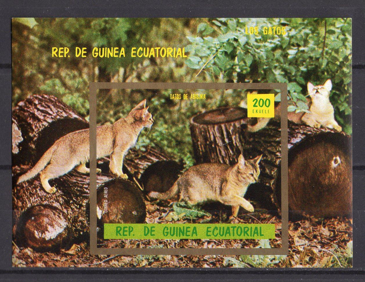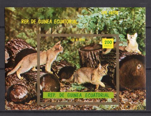 Почтовые марки. Экв. Гвинея, 1976 г. Фауна. Кошки. Бл. 253. Беззуб. См. сост.