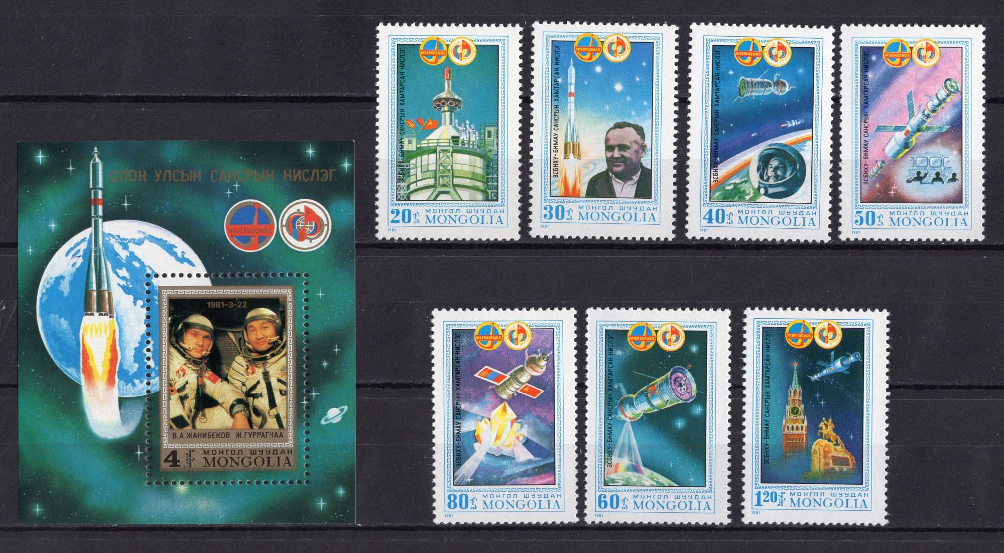 Почтовые марки. Монголия, 1981 г. №1367-1373. Бл. 71. Космос.