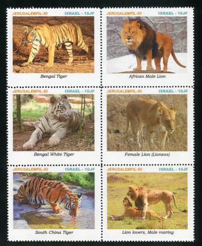 Почтовые марки. Израиль. Некаталог. Млекопитающие: тигры, львы.