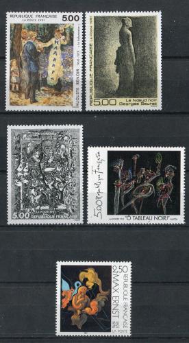 Почтовые марки. Франция, 1991 г. №2818, 2829, 2865, 2882, 2868. Живопись.