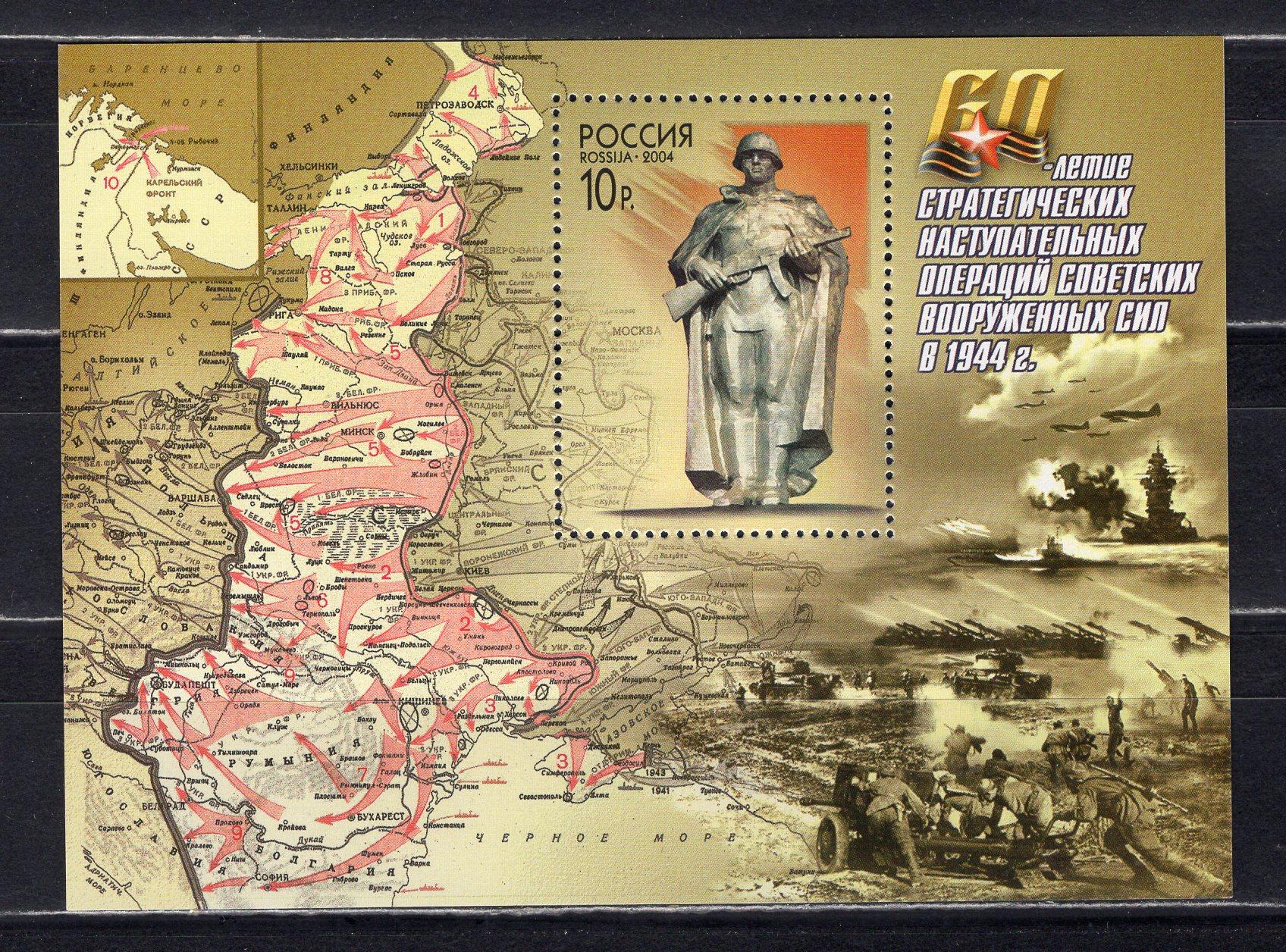 Почтовые марки. Россия. 2004г. 60-летие наступательных операций. Блок №54.