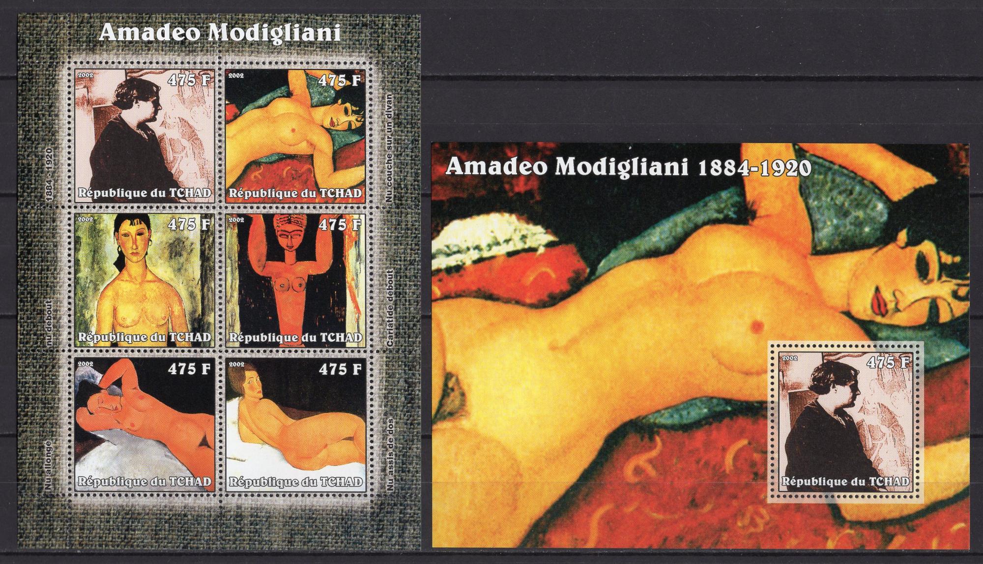 Почтовые марки. Чад, 2002 г. 2364-2369, Бл. 249. Искусство. Амедео Клементе Модильяни (Mi 20.00 e)